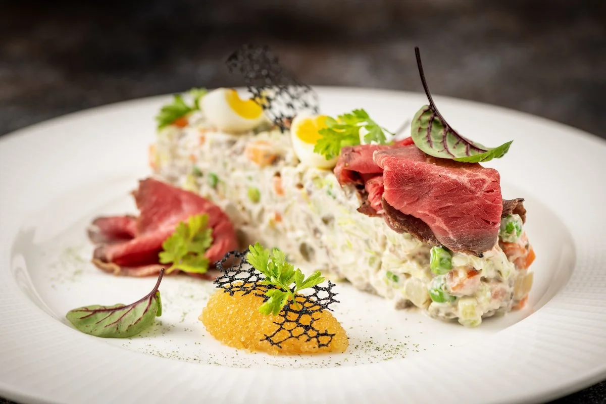 Ингредиенты для приготовления Русский салат с телятиной и икрой: