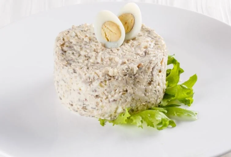 ШАГ 2 Очень мелко нарезать филе грудки цыплят, шампиньоны, корнишоны, куриное яйцо, репчатый лук.
