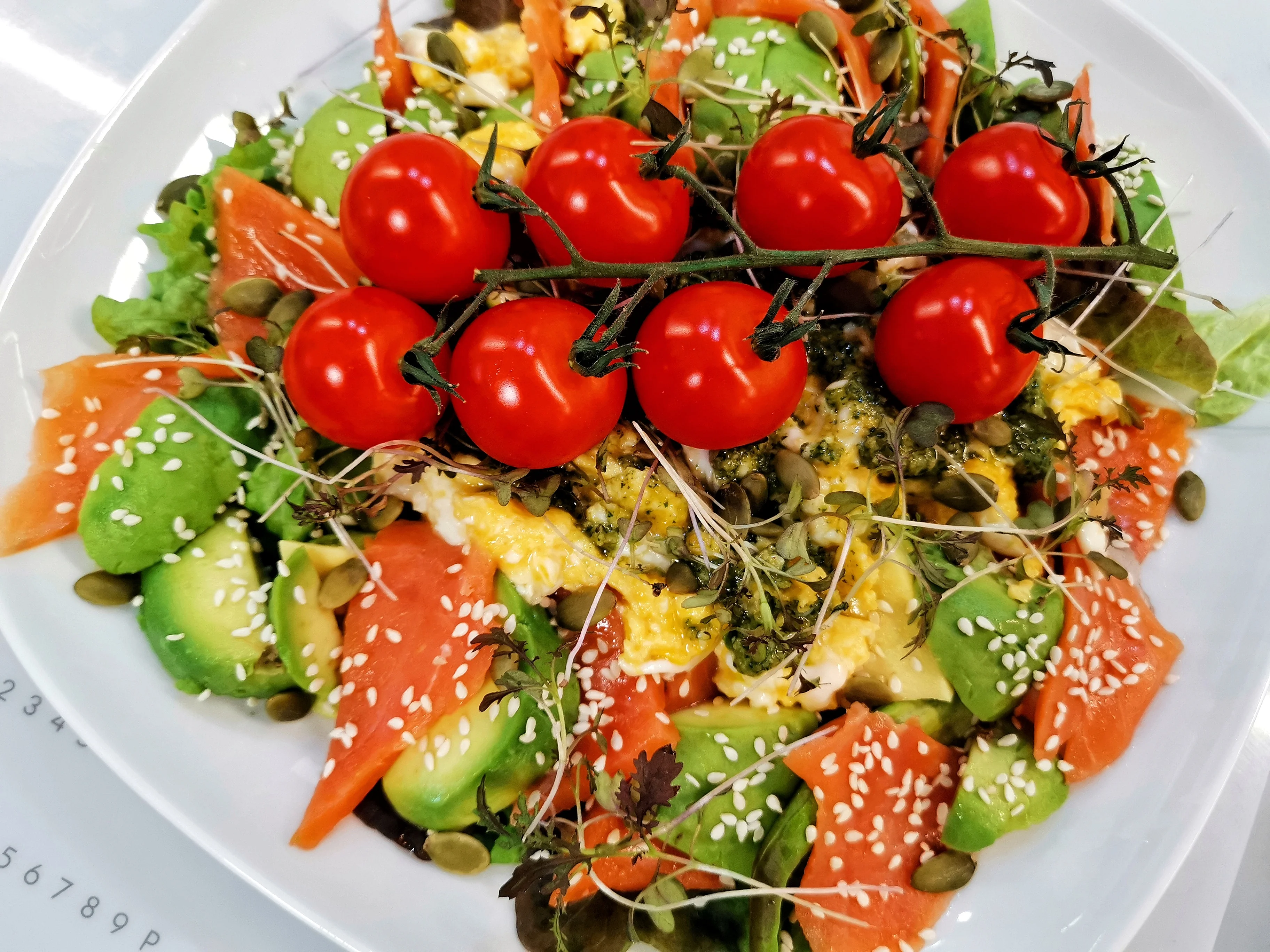 Ингредиенты для приготовления Салат из кижуча с авокадо и соусом песто: