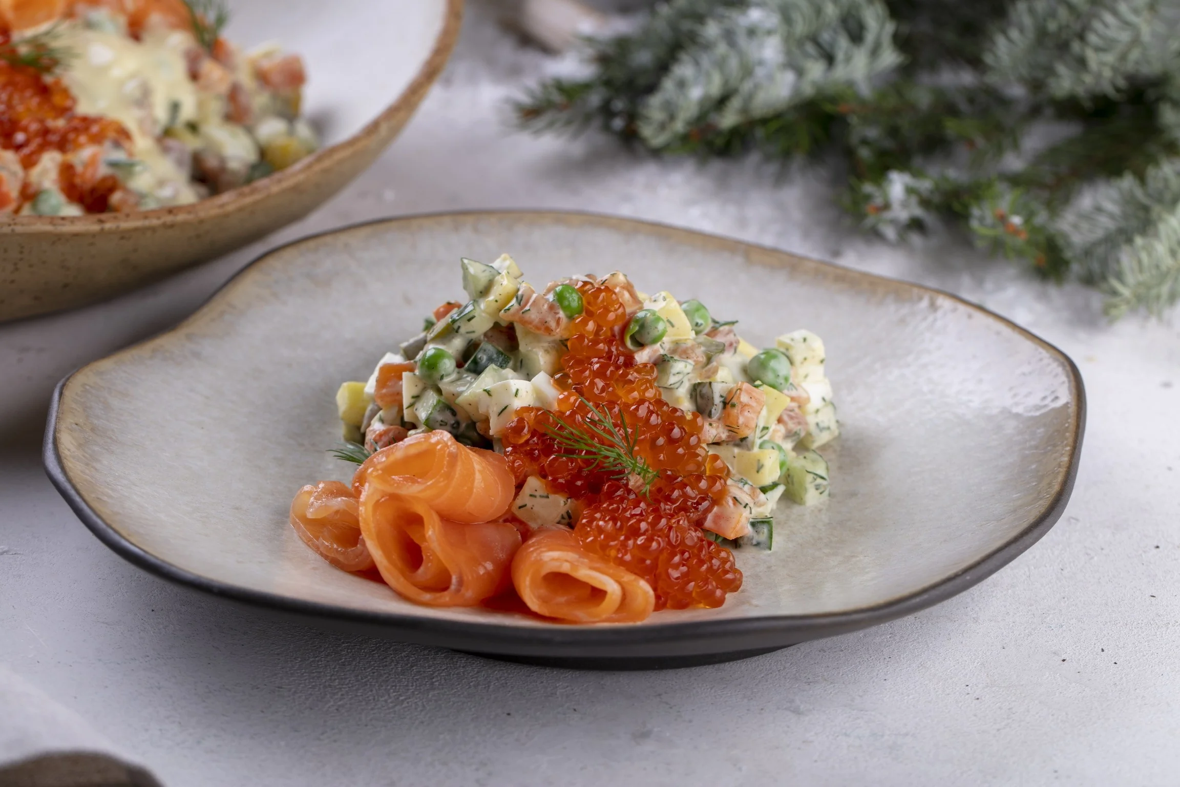Оливье со слабосоленым лососем