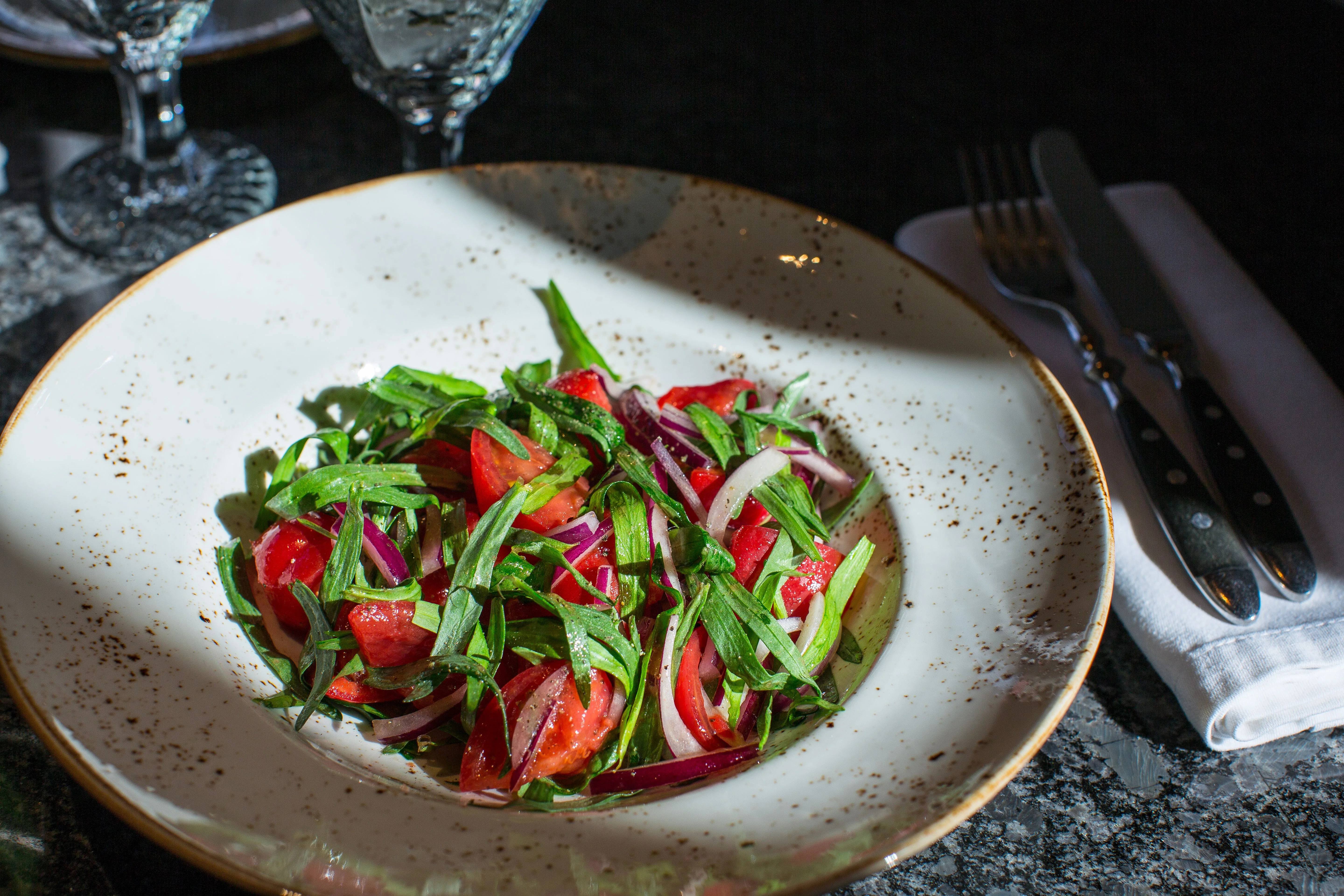 Салат с томатами, луком и тархуном