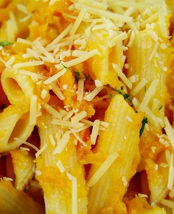 ШАГ 3 Сварите пасту в слегка подсоленной воде, обсушите и верните в кастрюлю. Добавьте тыкву, рукколу и пармезан. Хорошо перемешайте.