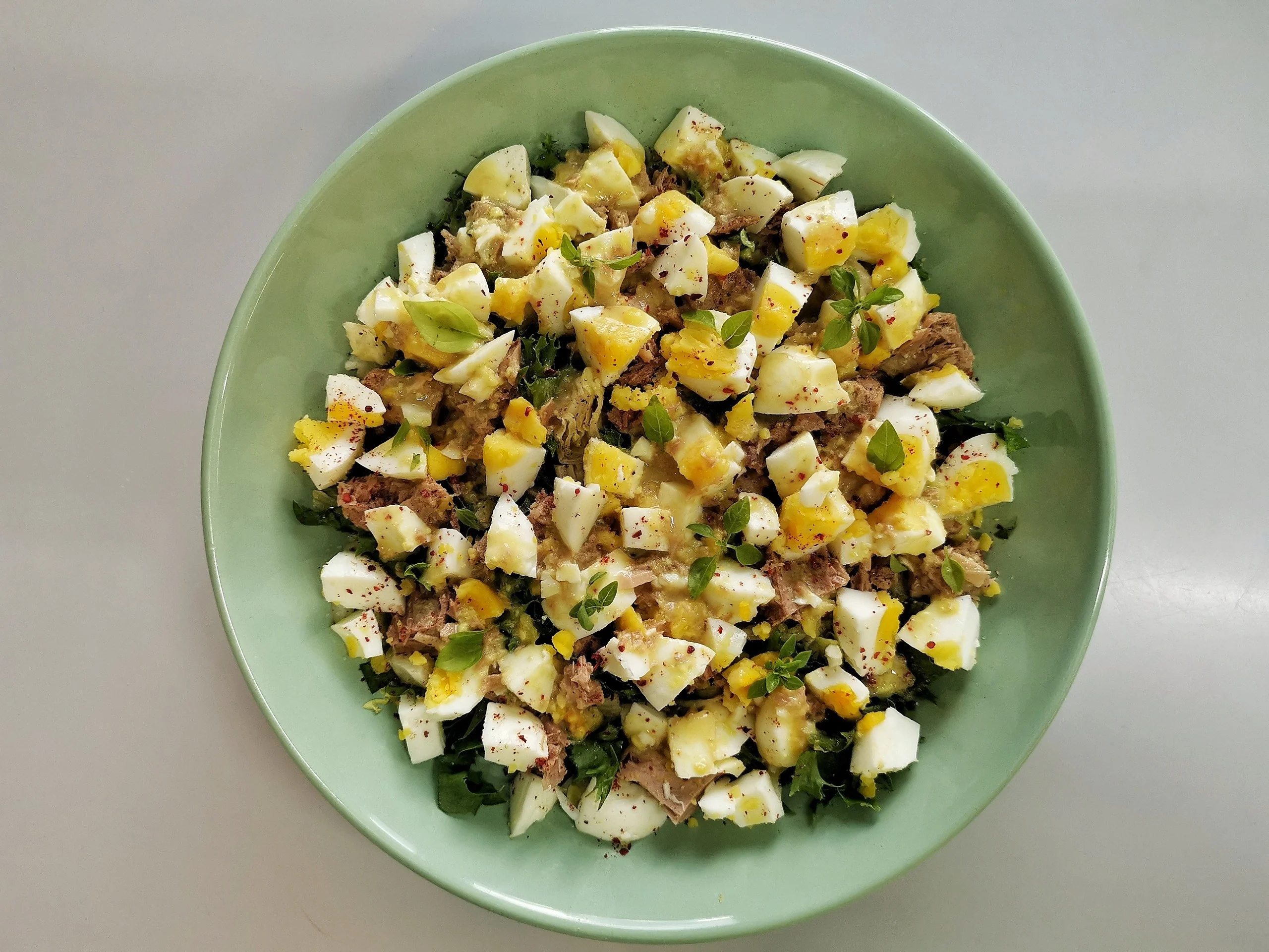 Ингредиенты для приготовления Салат из тунца с яйцами и базиликом: