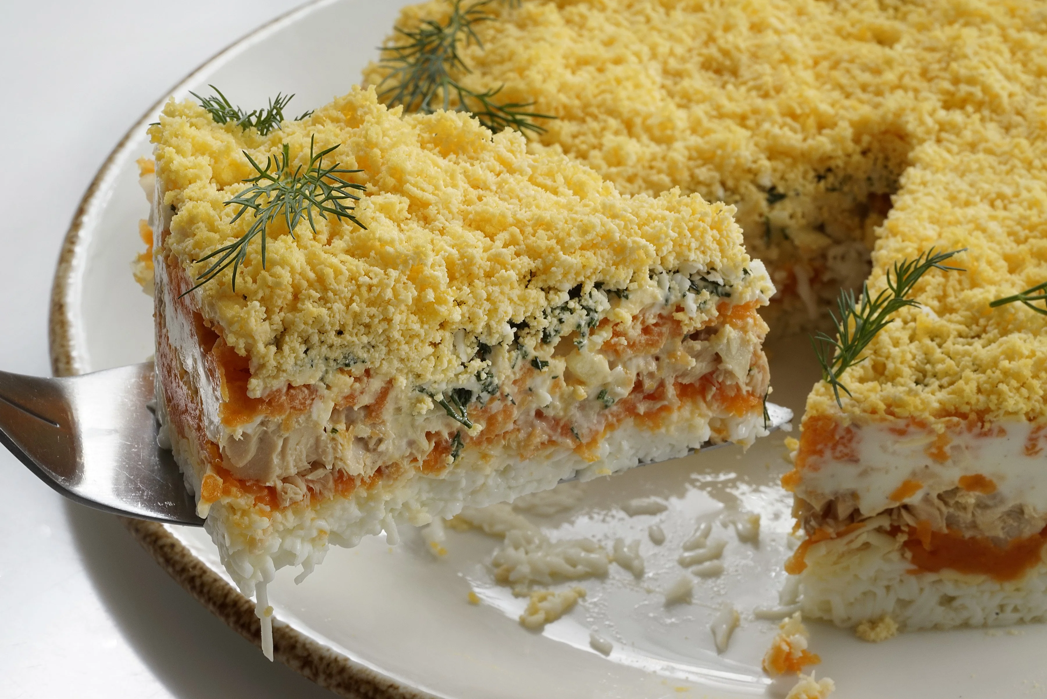 Ингредиенты для приготовления Классический салат «Мимоза» с морковью: