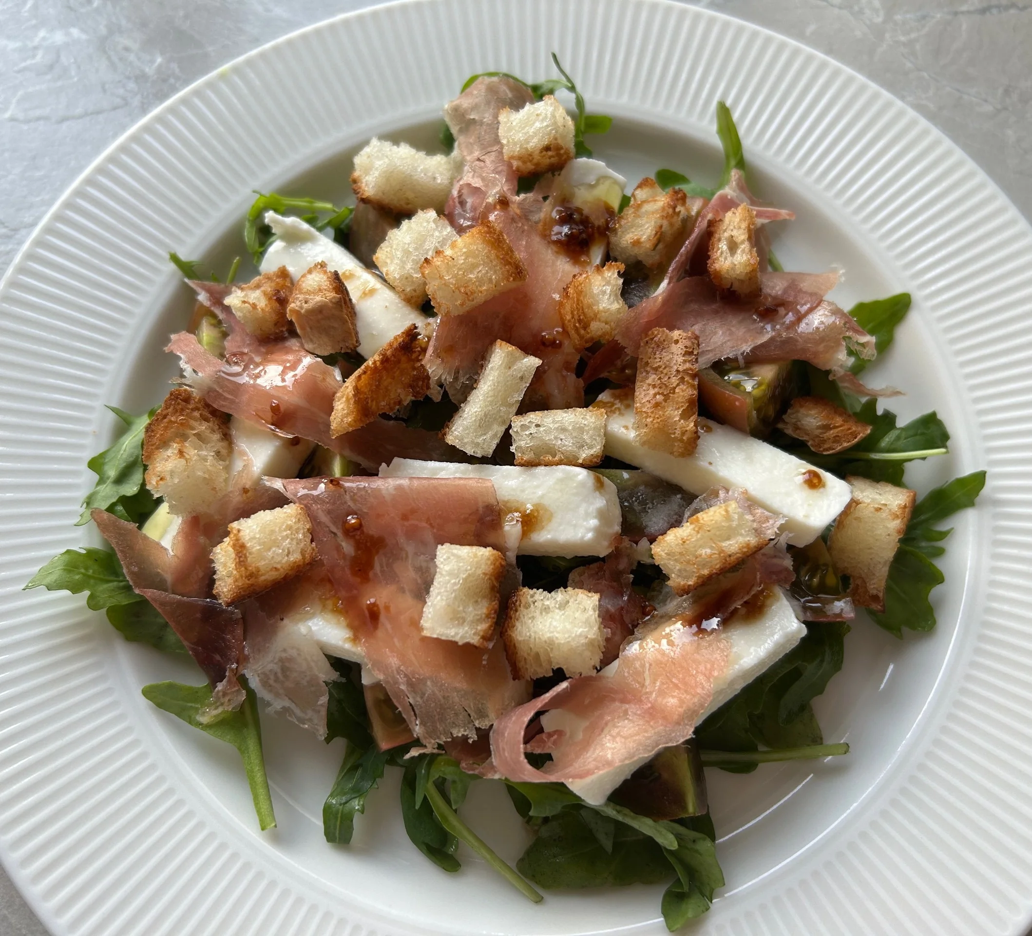 Салат с хамоном и руколой Добавил:admin 31 октября 2023 0 Калорийность блюда: 344 ккал * Содержит жиров: 24 грамм Содержит белков: 17 грамм Содержит углеводов: 22 грамм *Расчёт для сырых продуктов Салат с хамоном и руколой Время приготовления: 20 минут Количество порций: 3 Ингредиенты для приготовления Салат с хамоном и руколой: Помидоры черри 200 г Сыр моцарелла 125 г Рукола 60 г Хамон 40 г Хлеб 100 г Оливковое масло 30 мл Мед 1 чайная ложка Бальзамический уксус 1 чайная ложка Горчица 1 чайная ложка Соль щепотка Авторизация Логин: Пароль: Забыли пароль? Чужой компьютер Войти на сайт Регистрация