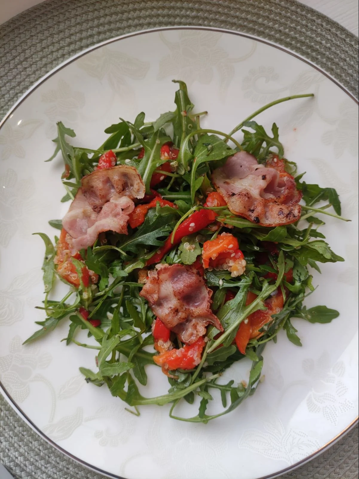 Ингредиенты для приготовления Салат с руколой, беконом, болгарским перцем и киноа: