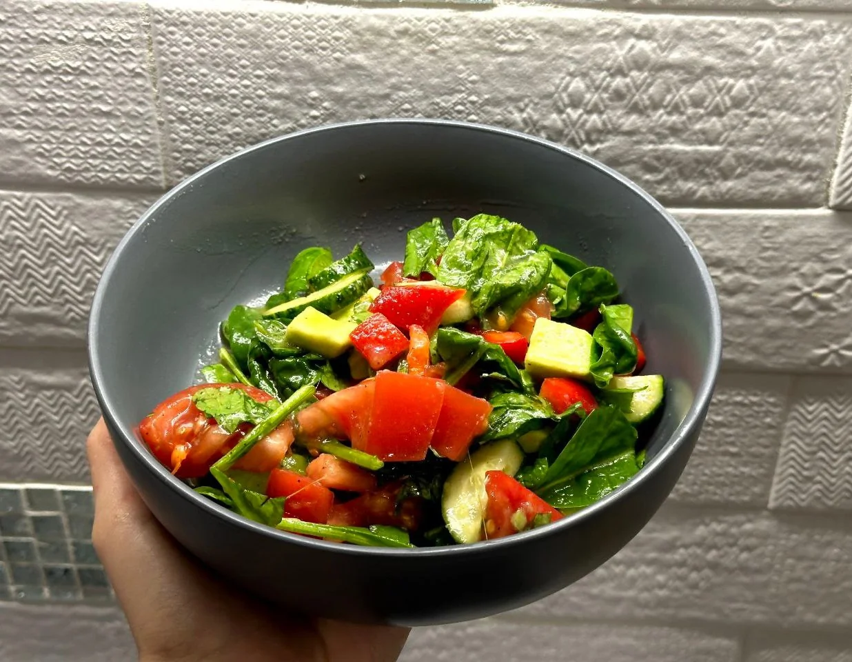 Салат из шпината с овощами и авокадо с медовой заправкой