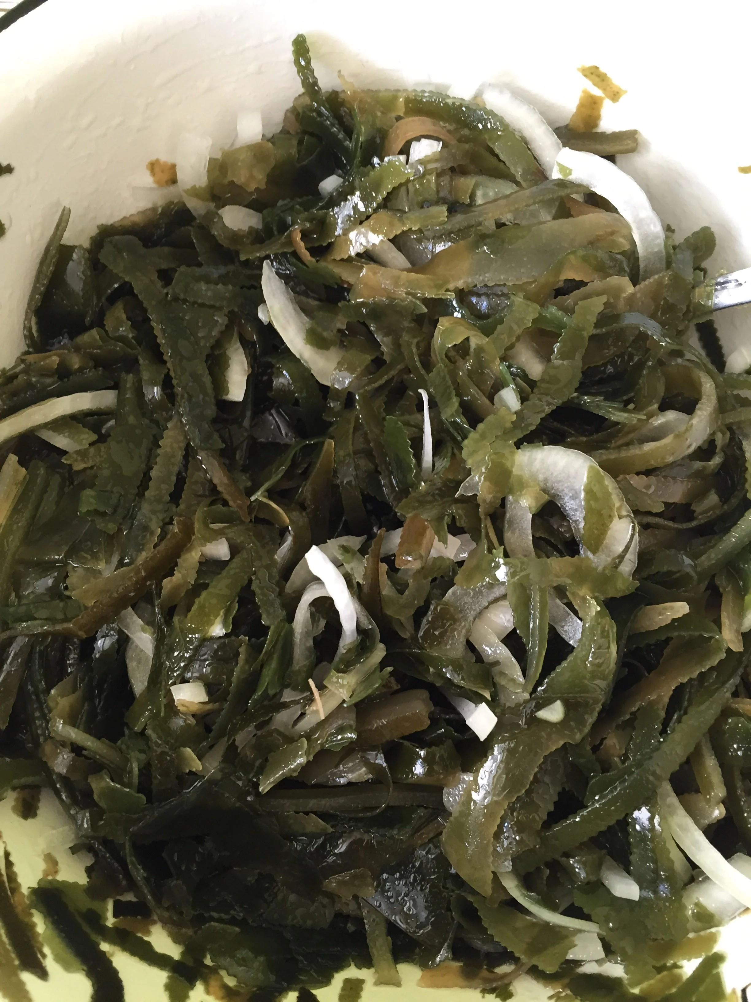 ШАГ 3 Соленые огурцы нашинковать соломкой, лук нарезать кольцами.