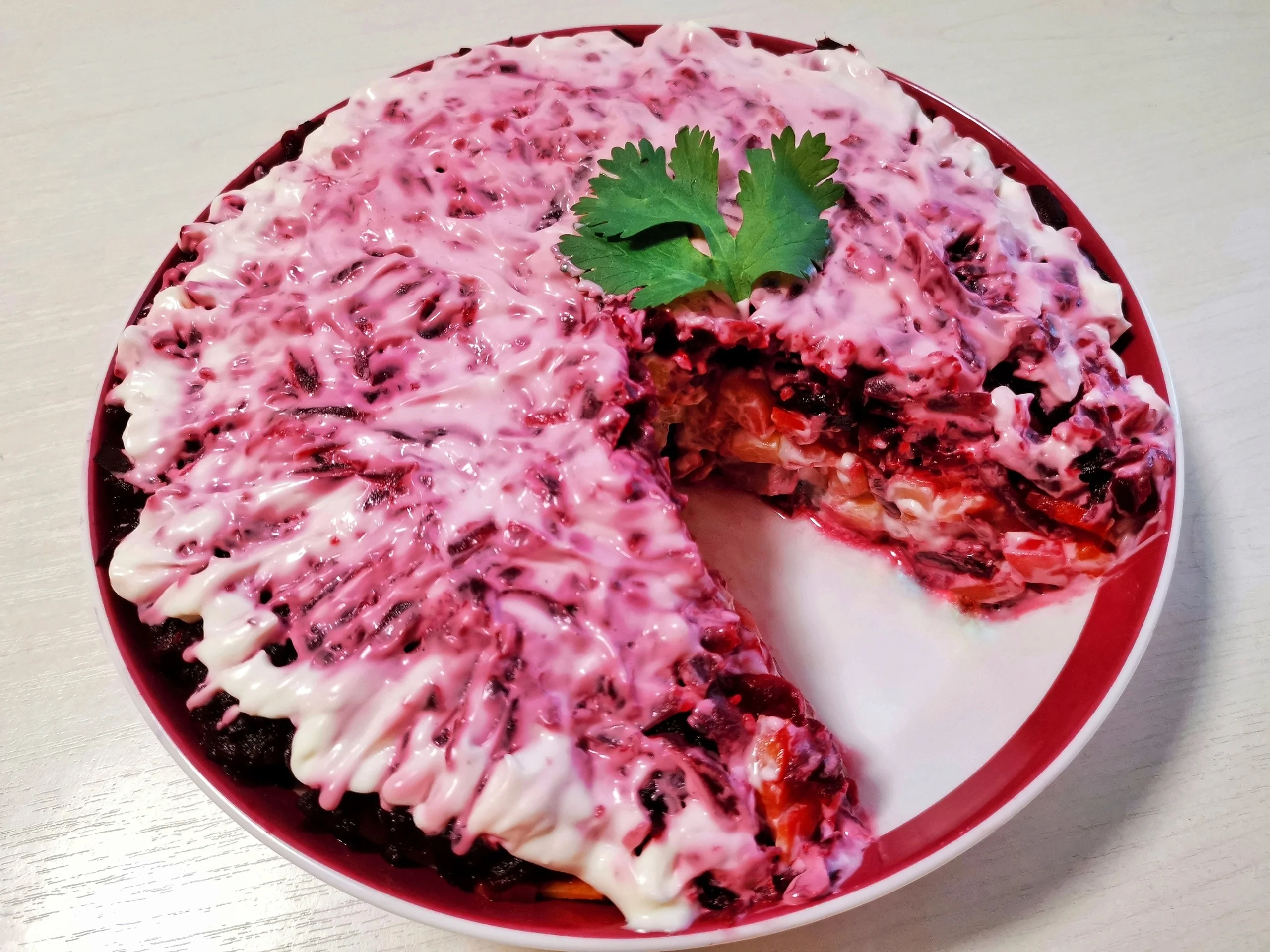 ШАГ 10 Далее выложить морковь, смазать майонезом.