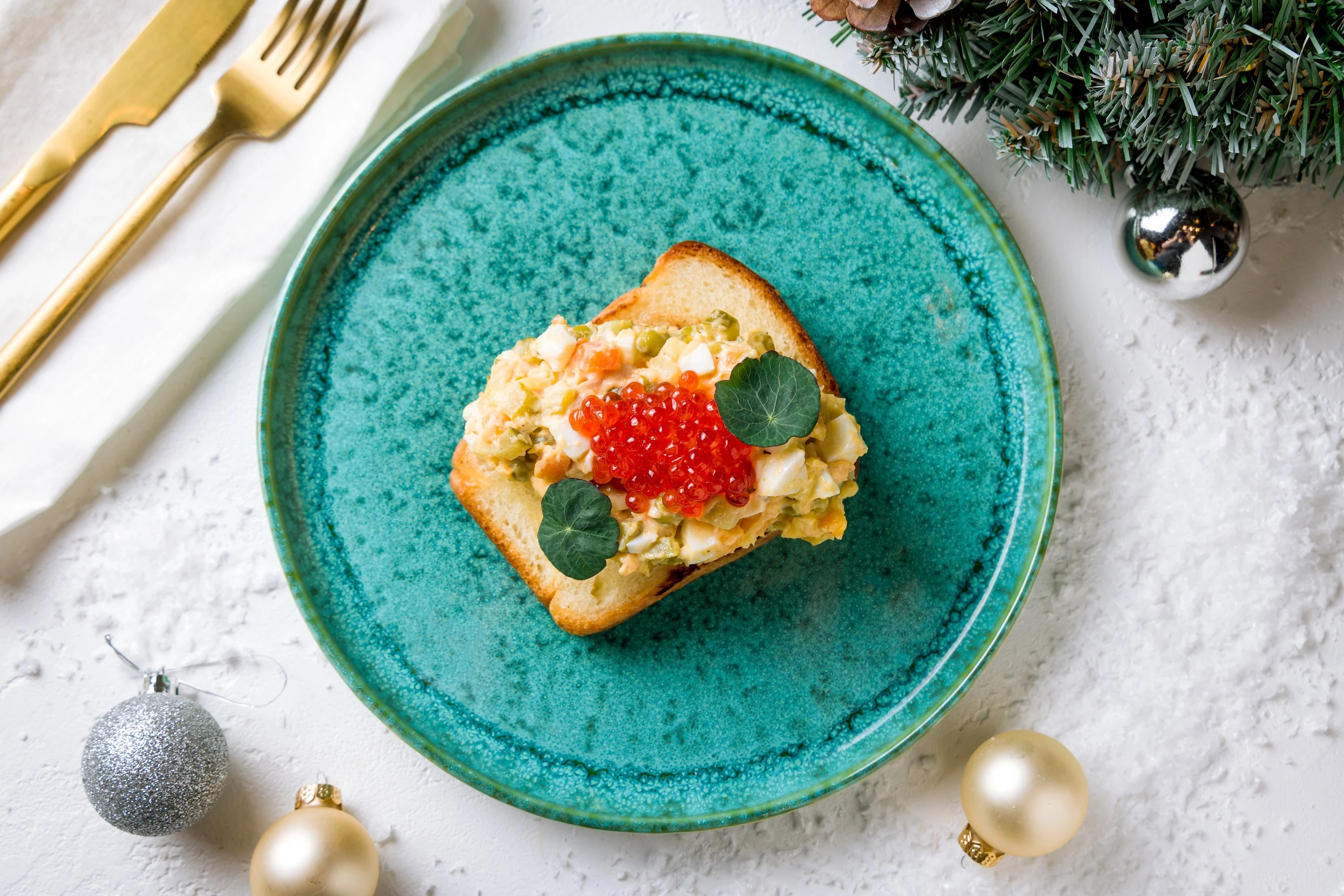 Ингредиенты для приготовления Оливье с лососем и красной икрой: