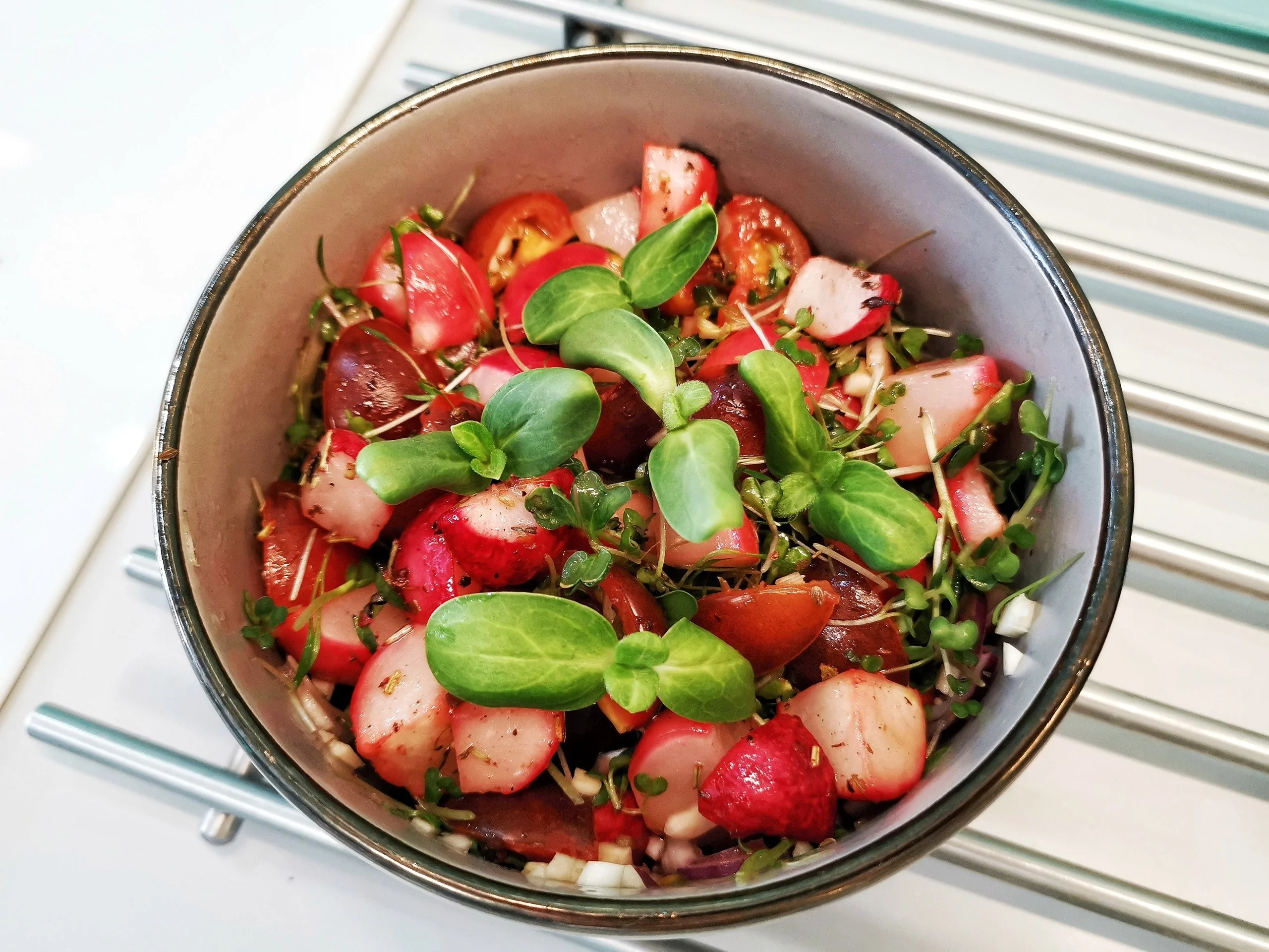 ШАГ 9 Объединить все ингредиенты, добавить микрозелень и заправить оливковым маслом.