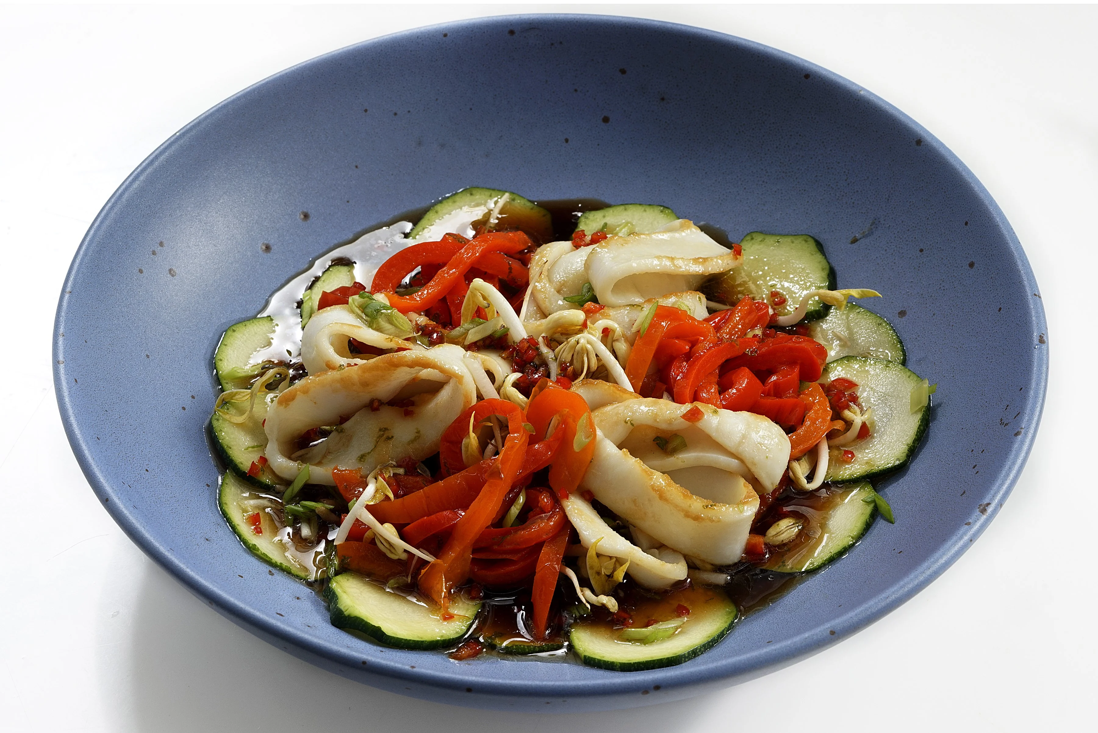 Ингредиенты для приготовления Легкий салат с кальмарами: