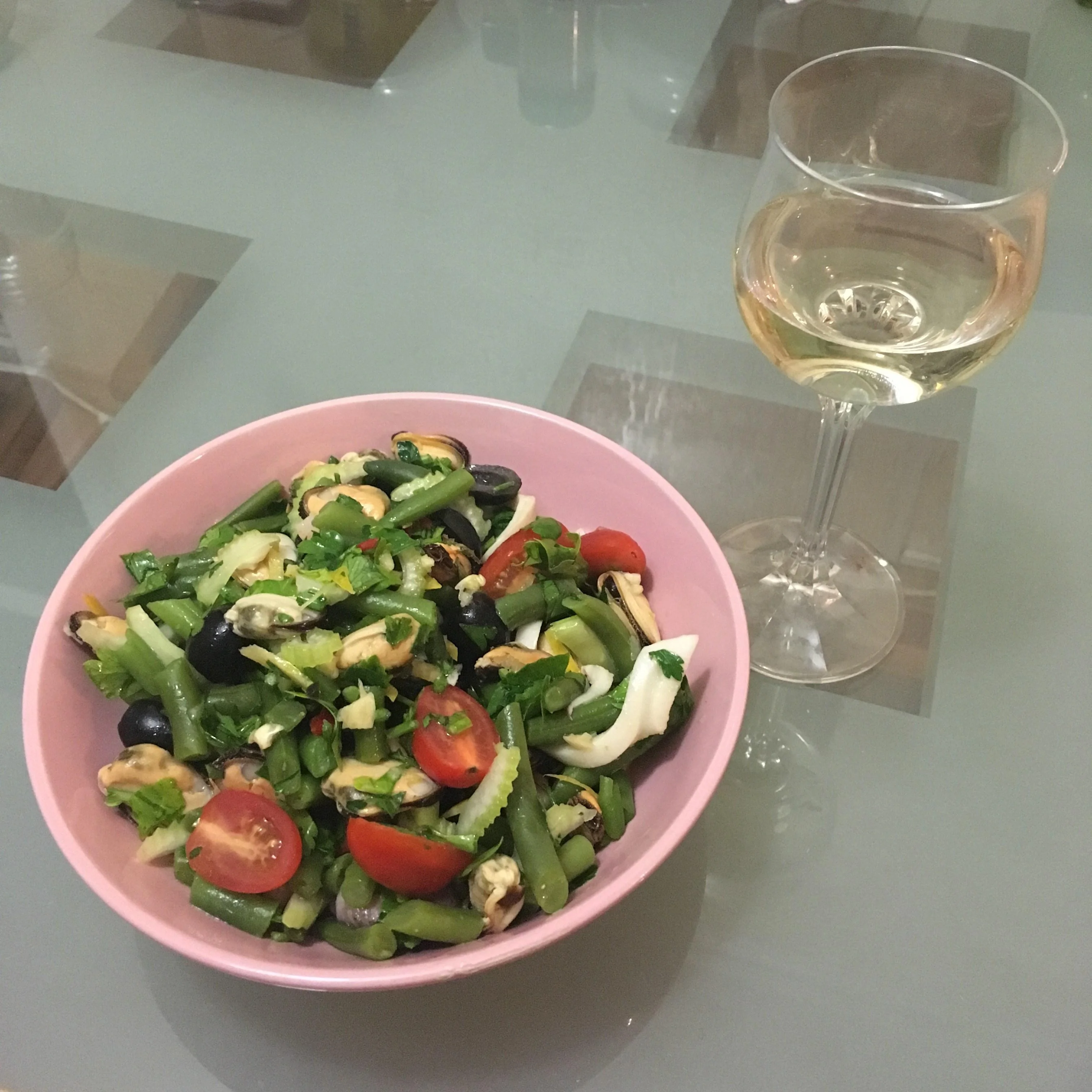 ШАГ 1 Тонко нарезать стебли сельдерея, порубить листья петрушки, разрезать маслины продольно на половинки, помидоры порезать дольками или пополам, если используете черри. Фасоль отварить в подсоленной воде и остудить.