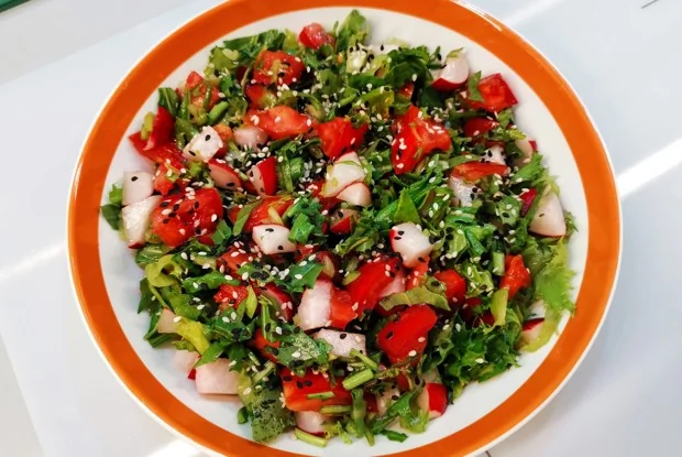 ШАГ 8 Выложить фриллис в салат и добавить сок лимона.
