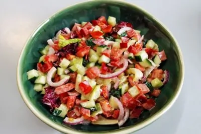 ШАГ 2 Огурцы нарезать небольшим кубиком, отправить в глубокое блюдо и посолить.