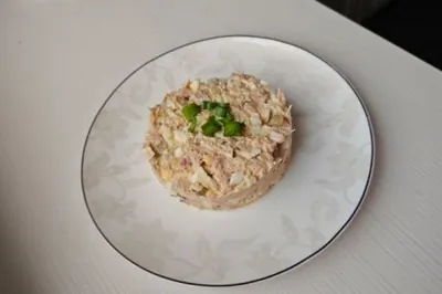 Куриное яйцо Соль Майонез Соленые огурцы Консервированный тунец в собственном соку Красный лук Свежемолотый черный перец Главная Салаты Русская кухня Пошаговые рецепты Рыбные салаты Салаты из яиц