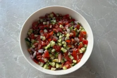 ШАГ 2 Нарезать огурец мелким кубиком.