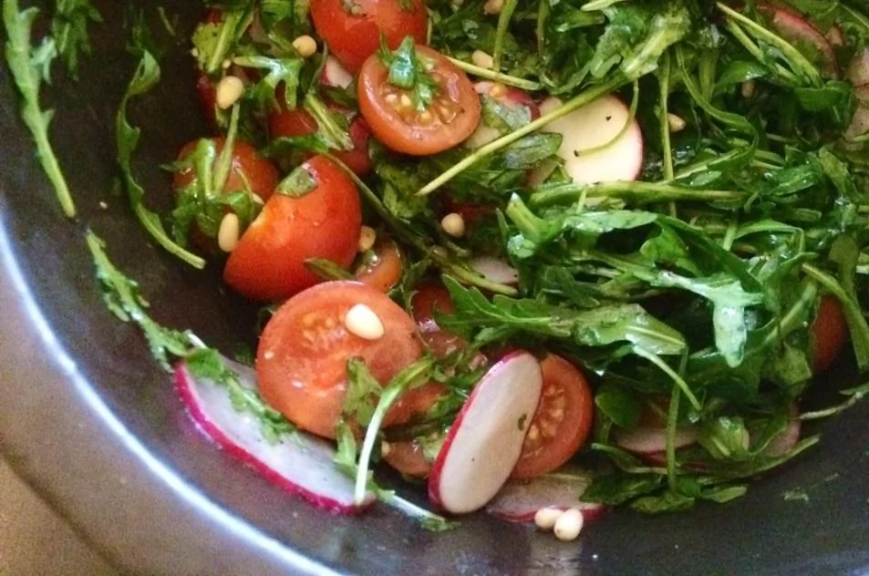 Ингредиенты для приготовления Руккола с редисом и помидорами: