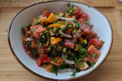 Ингредиенты для приготовления Салат из помидоров к мясу: