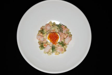 Оливье с авокадо и креветками