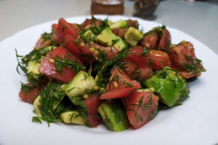 ШАГ 10 Подавать салат с помидорами и авокадо.