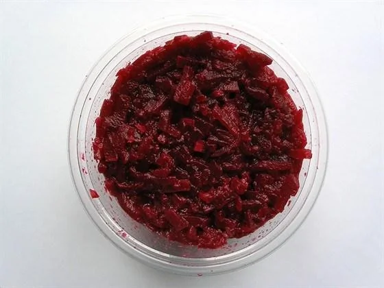 ШАГ 1 Свеклу отварить или испечь в духовке и нарезать ломтиками или натереть на крупной терке. Посолить и полить уксусом.