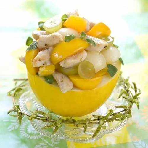 ШАГ 6 Перемешайте куриное филе, манго, сельдерей. Добавьте измельченный кориандр, орехи и заправьте салат.