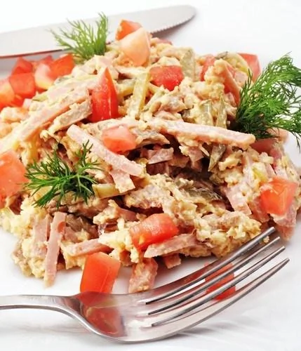 Салат из бекона с сыром, грецкими орехами и каперсами