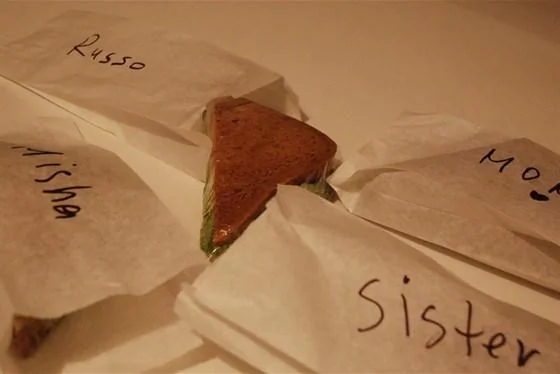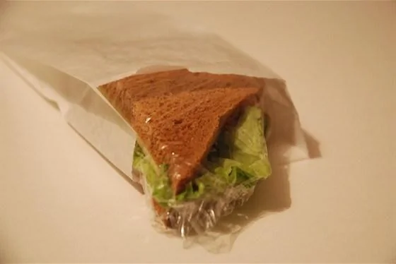 ШАГ 4 На верхний — салатный лист и ломтик помидора.