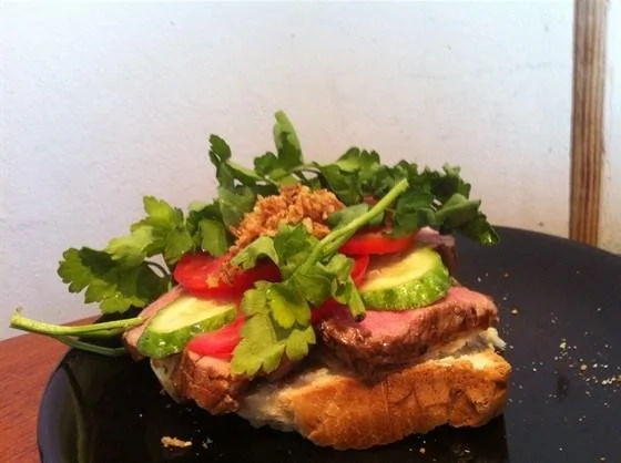 Датский открытый сэндвич (smørrebrød) с ростбифом