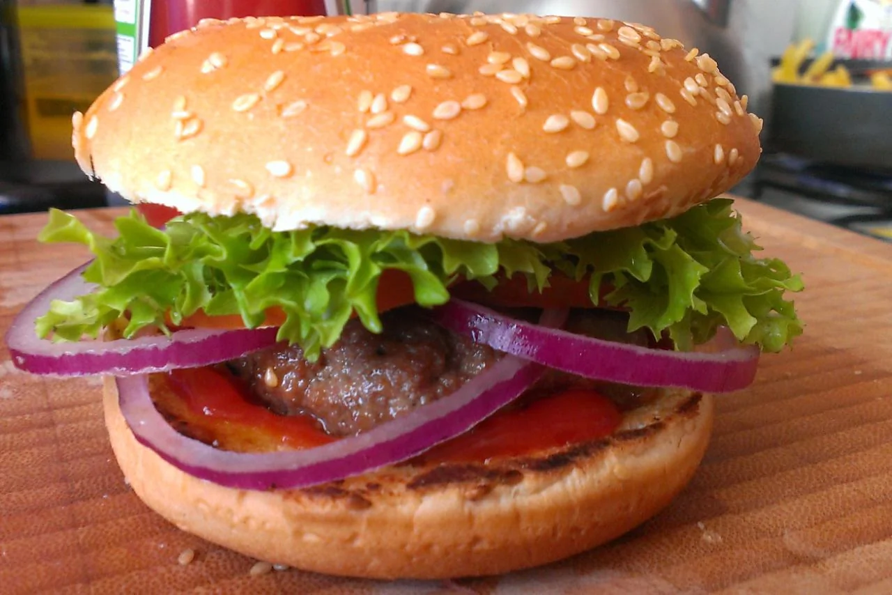 Гамбургер из говядины с соусом из меда и чили