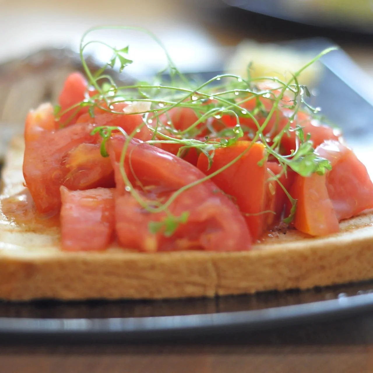 ШАГ 2 Нарезаем помидоры, перекладываем их в миску, сбрызгиваем оливковым маслом и бальзамическим уксусом. Солим, перчим.