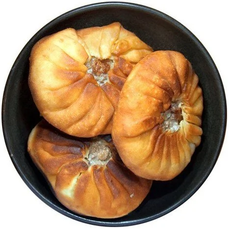 ШАГ 2 Разложите начинку на квадратики из теста, оставляя бортик в 2,5 см. Смажьте края теста яйцом, сложите квадратики по диагонали, чтобы получилось треугольники. Переложите пирожки на смазанный маслом противень. Проколите их сверху вилкой для выхода пара. Смажьте оставшимся яйцом.