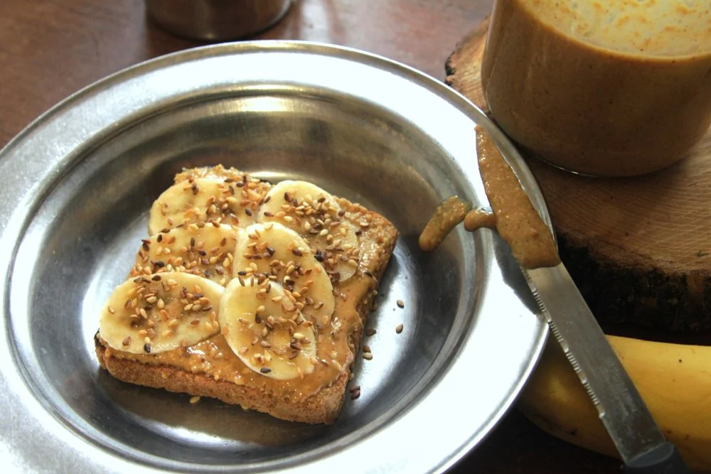 Ингредиенты для приготовления Тост с арахисовым маслом, бананом и кунжутом: