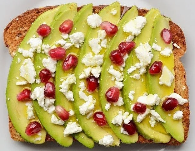 Ингредиенты для приготовления Тост с авокадо, фетой и гранатом:
