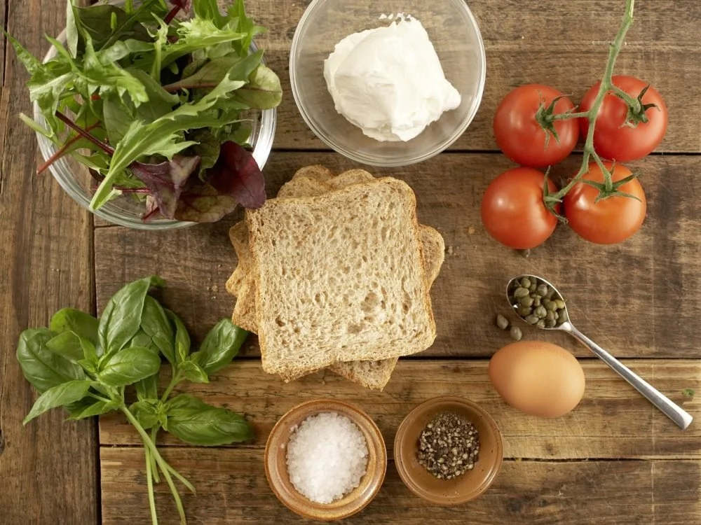 Ингредиенты для приготовления Сэндвич с помидорами и пряным яичным кремом: