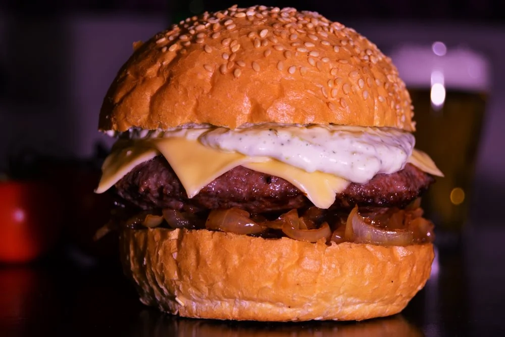 Чизбургер с карамелизованным луком с бальзамическим уксусом и соусом тартар
