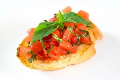 ШАГ 1 Раздавить чеснок, порезать помидоры и базилик.