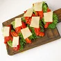 Красный сладкий перец Французский багет Творожный сыр Растительное масло Чеснок Бальзамический уксус Зеленый салат Твердый сыр Соль Молотый черный перец Сэндвичи Европейская кухня Вегетарианская еда Пошаговые рецепты Холодные закуски