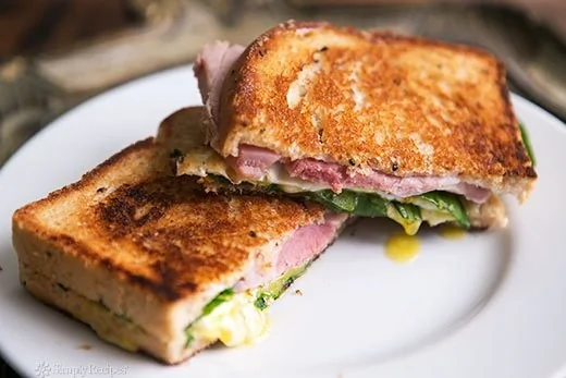 ШАГ 3 На хлеб положить ветчину и смазать полученным соусом.