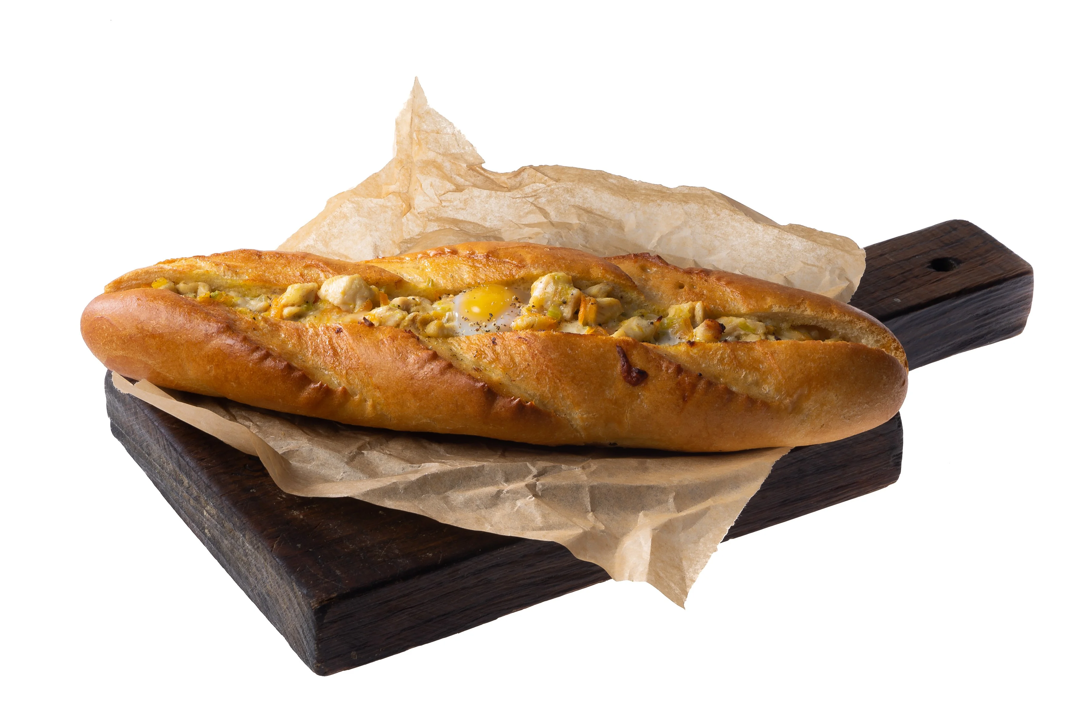 ШАГ 4 Багеты надрезать вдоль, вынуть мякоть так, чтобы получились лодочки.