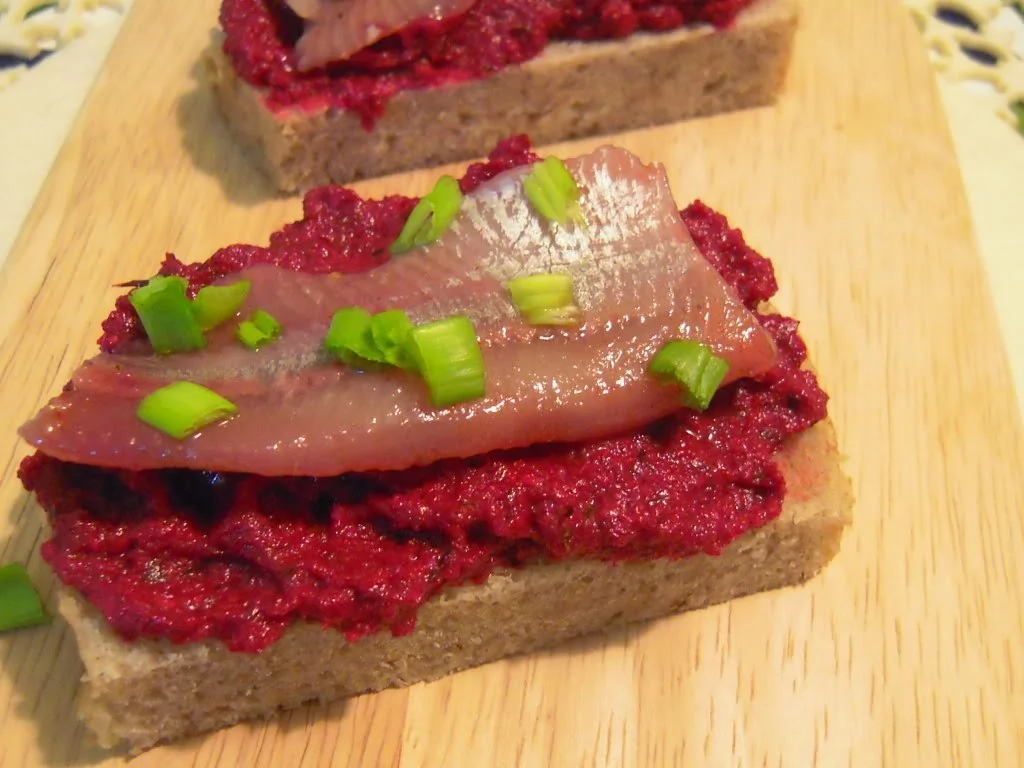 Бутерброд с горчичной селедкой и свеклой