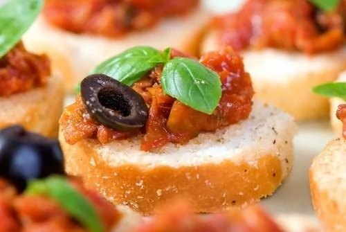 Ингредиенты для приготовления Брускетта с томатами и анчоусами: