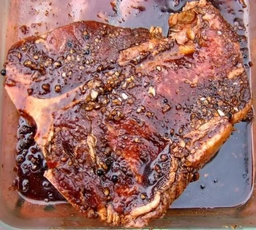 ШАГ 1 В миске смешайте вино, уксус, лимонный сок, мелко нарезанные листья орегано и базилика, черный перец и измельченный чеснок. Перелейте в пакет, добавьте говядину или курицу, плотно закройте и отправьте в холодильник на ночь.