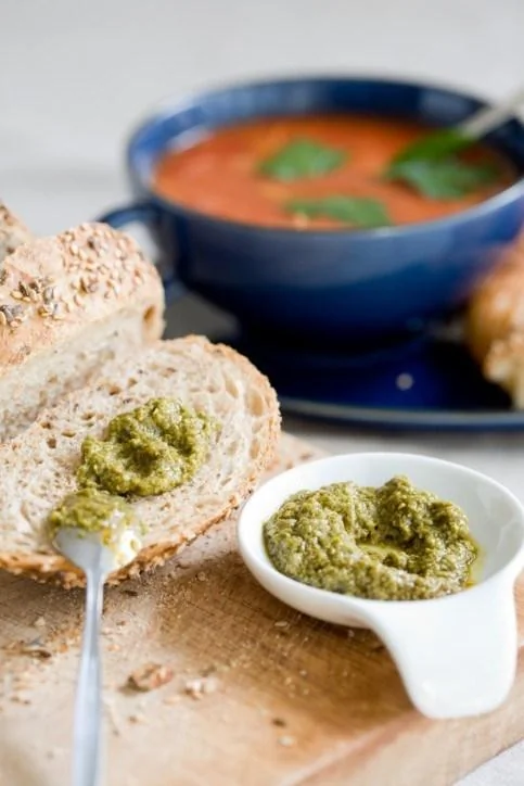 ШАГ 1 В блендере смешайте нарезанные чесночные стрелки, кедровые орешки, пармезан, оливковое масло, немного лимонного сока, соль и перец. Измельчите до однородной массы.