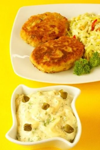 ШАГ 1 Приготовьте 500 миллилитров майонеза, подмешав 1 чайную ложку дижонской горчицы. Добавьте по столовой ложке каперсов и корнишонов, мелко порубленных, столовую ложку смеси измельченного эстрагона, петрушки и кервеля и 2-3 столовых ложки мелко нарезанного анчоусового пюре.