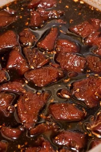 ШАГ 1 В миске смешайте уксус, апельсиновый сок, соевый соус, растительное масло, измельченный чеснок, апельсиновую цедру и тимьян.