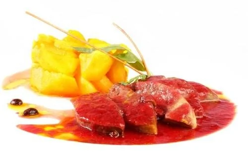 ШАГ 2 В форме смешайте очищенную от косточек вишню, апельсиновый сок, тимьян, паприку и соль.