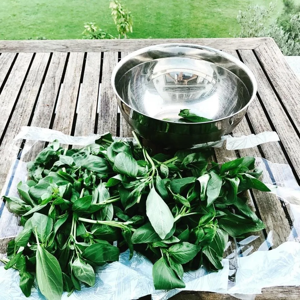 ШАГ 1 Базилик вымыть и снять лишнюю воду.