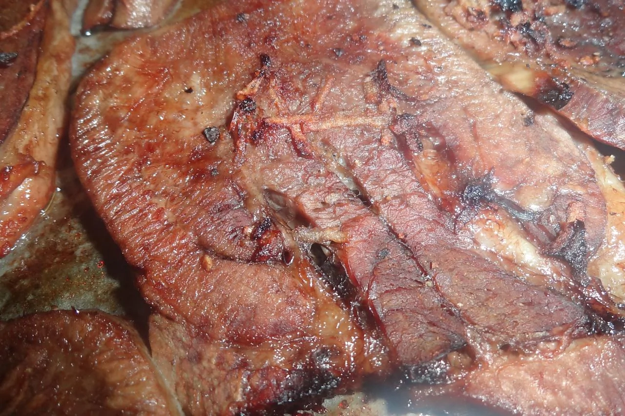 ШАГ 5 Затем на противен положить пергамент/бумагу для выпечки, смазать ее растительным маслом и уложить язык, запекать до коричневого цвета.